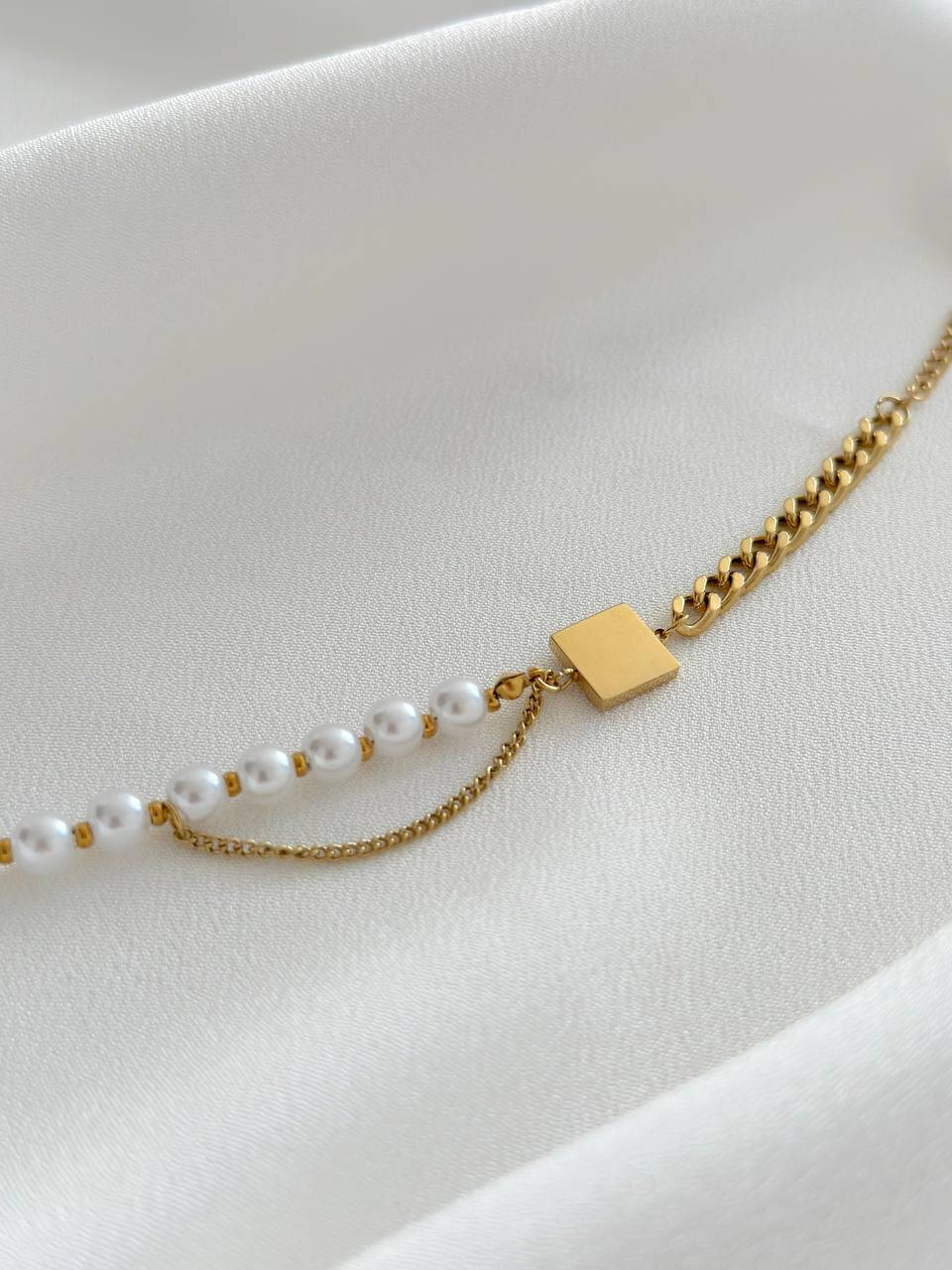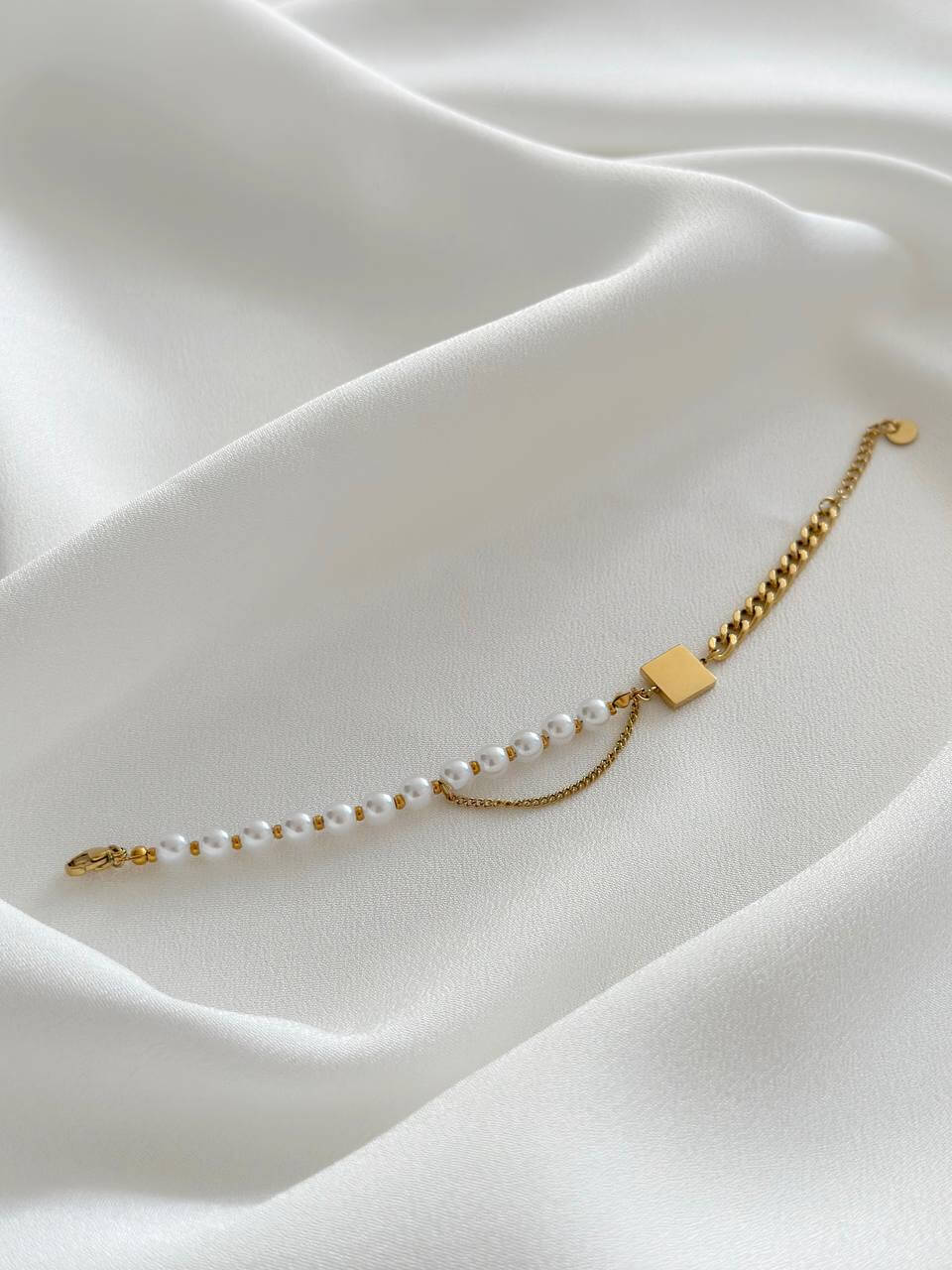 Bransoletka ze stali chirurgicznej Biały Kwadrat