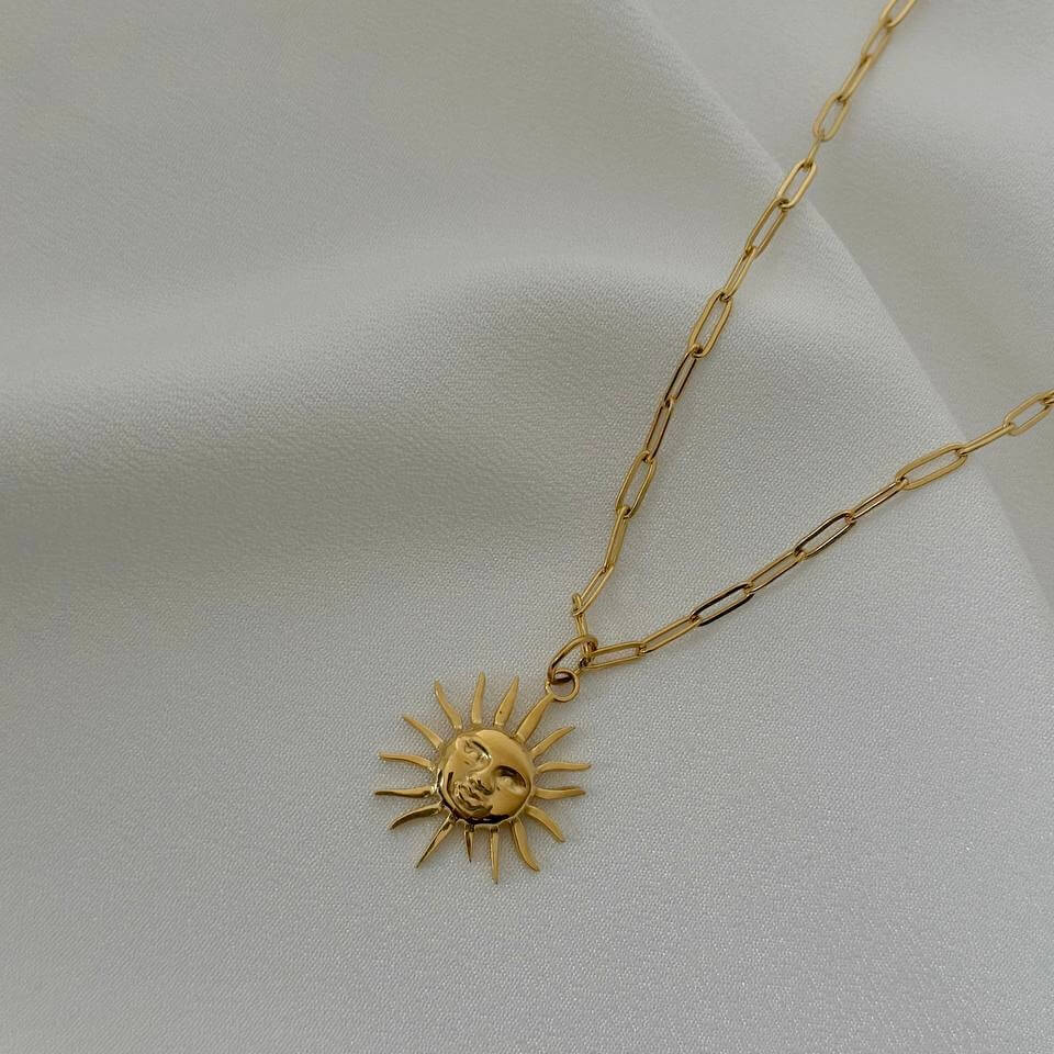 Helios to naszyjnik inspirowany mitologiczną symboliką słońca, które od wieków było znakiem siły, energii i wiecznego blasku. Delikatny łańcuszek o długości 41 + 5 cm prowadzi do wyjątkowej zawieszki o średnicy około 3 cm, przedstawiającej słońce w pełnej, majestatycznej formie.