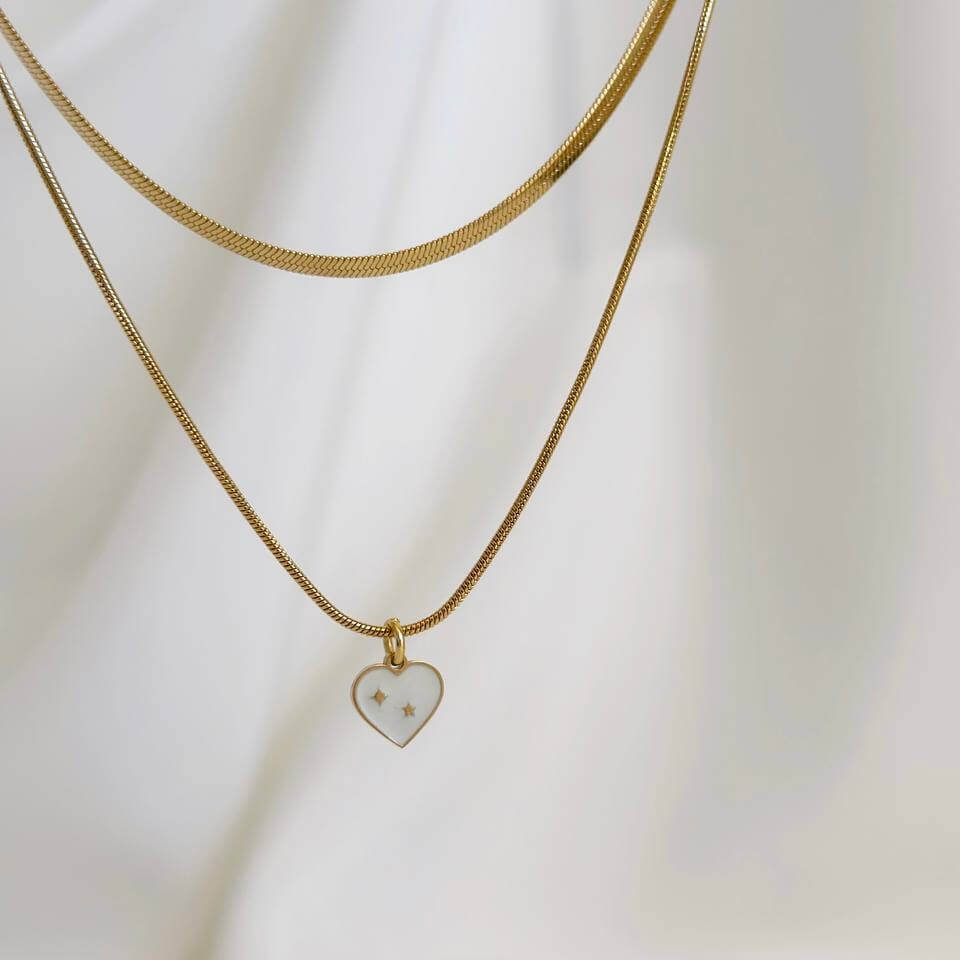 Naszyjnik ze stali chirurgicznej komplet Serduszko Białe