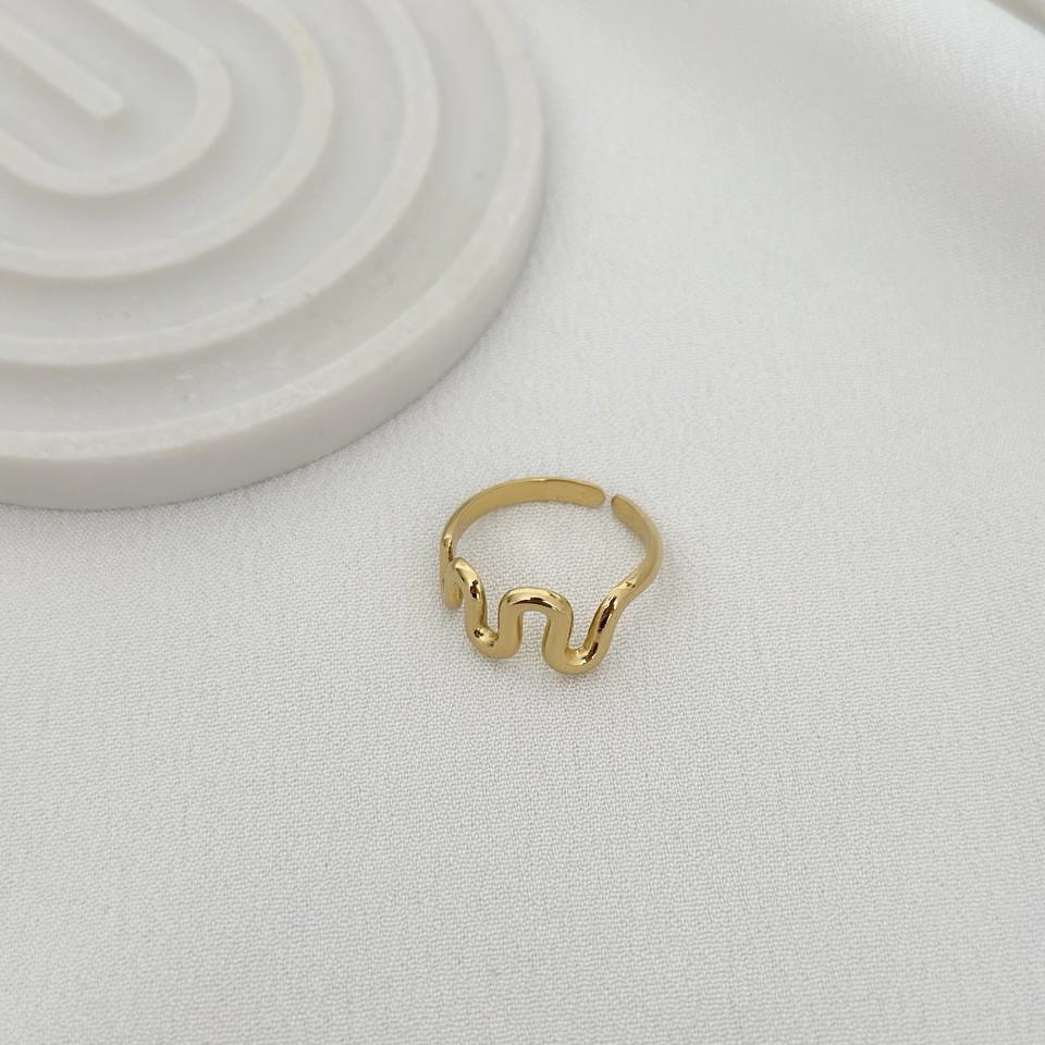 Błysk Ruchu – pierścionek, który przyciąga uwagę miękką linią i nowoczesną formą. Jego lekko falujący kształt symbolizuje swobodę, lekkość i harmonię – to detal, który dodaje stylizacji charakteru, nie zabierając jej delikatności. Idealny dla tych, którzy kochają niestandardowe formy i chcą się wyróżniać subtelnie, ale skutecznie.